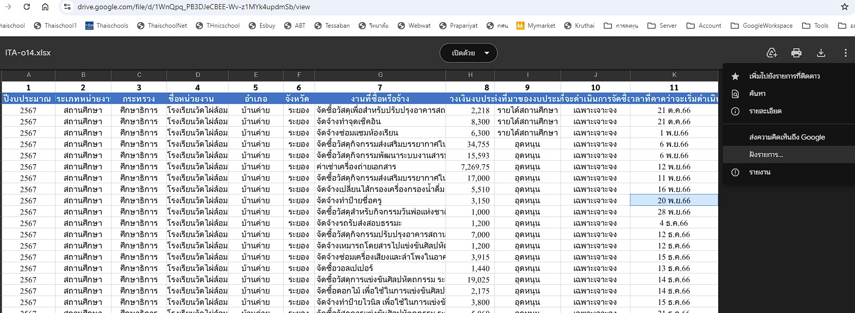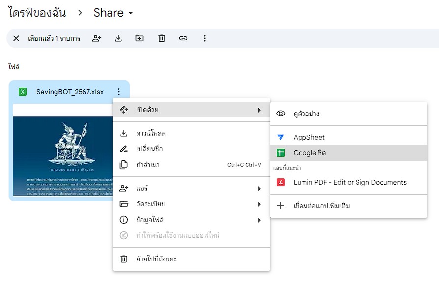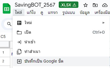 3. ทำการบันทึกไฟล์ Excel เป็น Google sheet