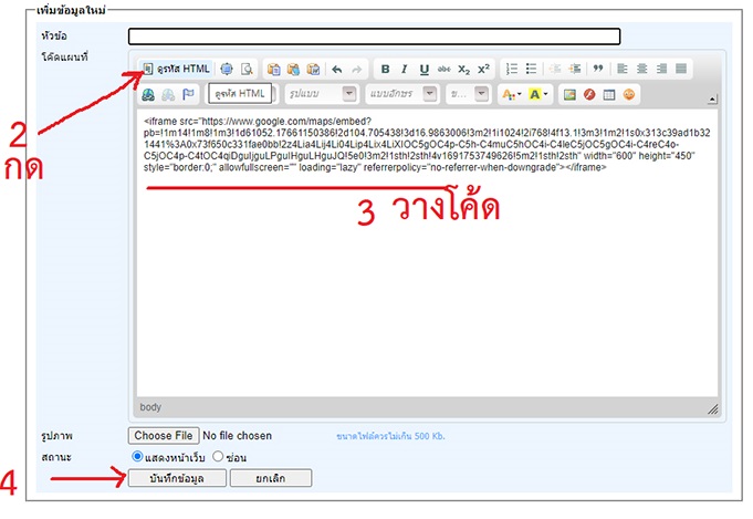 ขั้นตอนการแทรกโค้ด ทำการแทรกในเนื้อหาหรือเมนูที่ต้องการได้เหมือนกับการแทรกโค้ดทั่วไป
